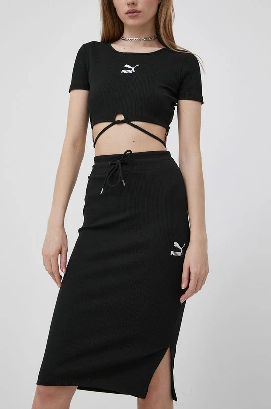 Φούστα από τη συλλογή Puma. Model o ευθεία τμήμα, από λεπτό, ελαστικό πλεκτό.